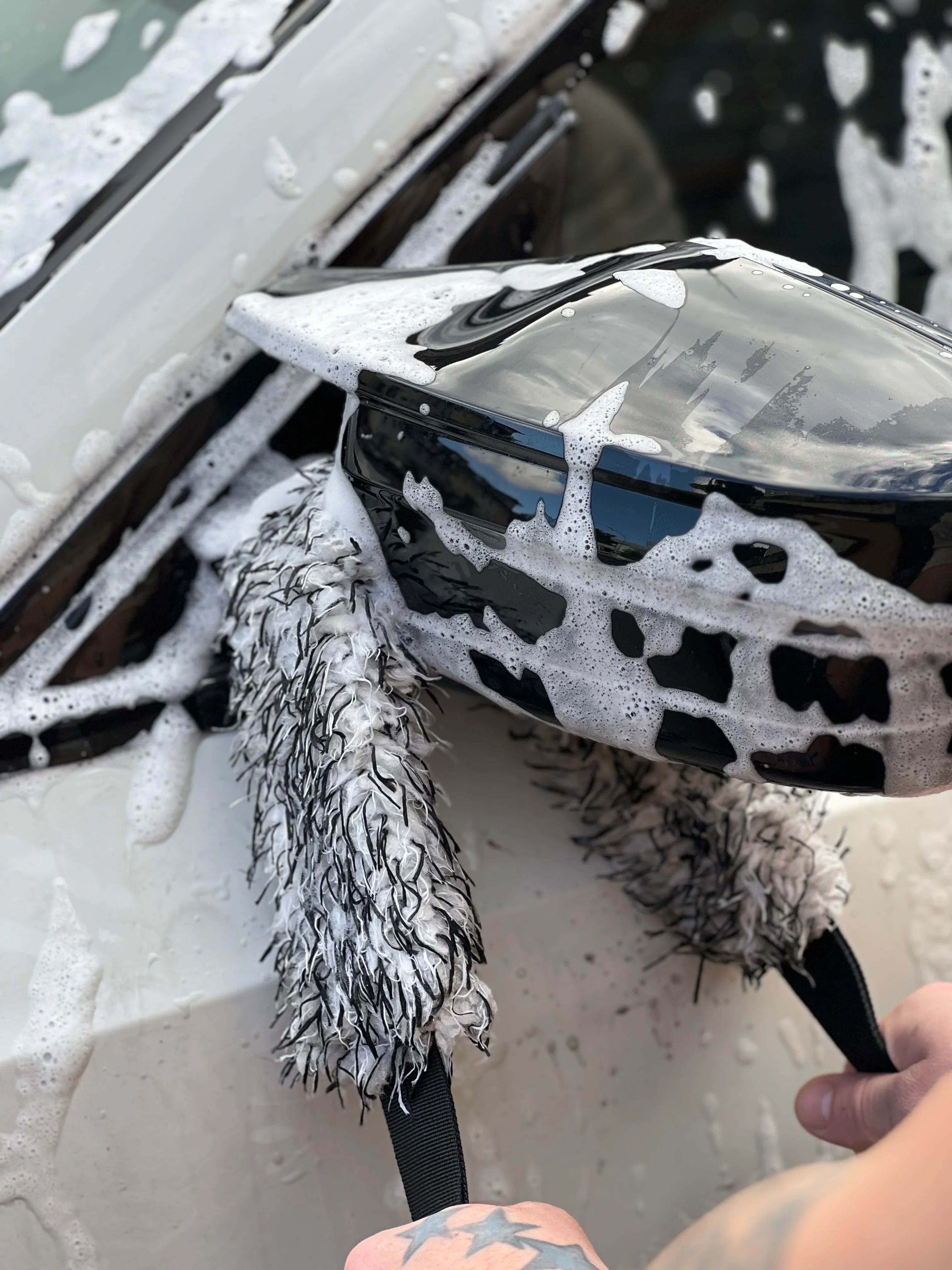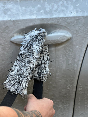 Seine langen, dichten Fasern absorbieren Wasser und entfernen Schmutz besonders effizient – ideal zum Waschen, Felgenreinigen und für das Innenraum-Detailing.